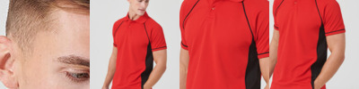 Cool Plus® fibres and yarns enabling moisture transportation (wicking), breathability and also quick dry properties. Pique Polo Shirt with contrast panelling and piping on side panels. Contrast Piping on raglan and cuffs. Raglan sleeves for extra freedom of movement. 2 button placket with (plain) ribbed collar.