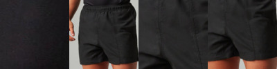 Microfibre with peached finish. Elasticated waist, drawcord, panel seams with twin stitching. Side pockets, back pockets with Velcro™ fastening and eyelet, keycord, mesh liners, twin needle hem. Also available in kids'