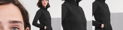 3-layer softshell fabric with breathable membrane and bonded microfleece lining, water resistant to 5000mm. Side pockets and chest pocket with inner lining, reversed zip and cord pulls. Full zip with inner storm flap and zip neck protector at collar. Bungee cord in hem. Adjustable cuffs. Drop tail. Feminine fit. Large left chest side decoration access.