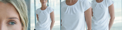 Women's pleat front blouse. Single button back neck opening. Capped sleeves. Straight hem. Fabric contains easycare, wicking, anti-UV, quick-drying properties. Matches HB590 range.