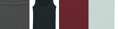Sleeveless. 1x1 rib binding at neck collar and armhole with narrow double topstitch. Inside back neck tape in self-fabric. Bottom hem with narrow double topstitch. Women's, fitted, sleeveless, scoop neck. 100% organic ringspun combed cotton. Single Jersey. Fabric washed.