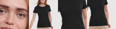 Contemporary shaped fit. Custom developed shoulder to shoulder tape offering greater stability and elegant look. Small size label in the left side of the neck and removable adhesive label. Narrow collar band with lycra. Side-seams improve fit. Comfortable, cool and light texture. Smooth surface for best print results. Contains organic cotton.