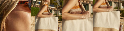 Printed stripe design. Durable canvas construction. Heavyweight rope carry handles. Can be used in the hand or over the shoulder. Handle length: 60cm.